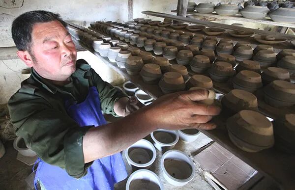 随着人们生活水平的不断提高,荥家湾窑罐技艺随着时代的发展,相继开发制作了各式各样的高档产品,如蒸饭甑、蒸鸡甑、花盆、笔筒、香炉、狮子、茶盘、金鱼缸,形成了窑罐多样化、艺术化,造型上保持了地方的特殊风格,显示了窑罐制作的高超技艺,自成一家。2014年,刘祖民的窑罐制作技艺在印江第五届民族民间文艺调演·绝技绝活大赛上夺得金奖,同年12月列入贵州省第四批非物质文化遗产名录。 (图:左禹华 文:多彩贵州网)