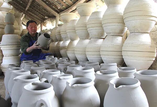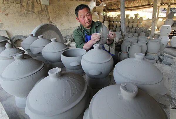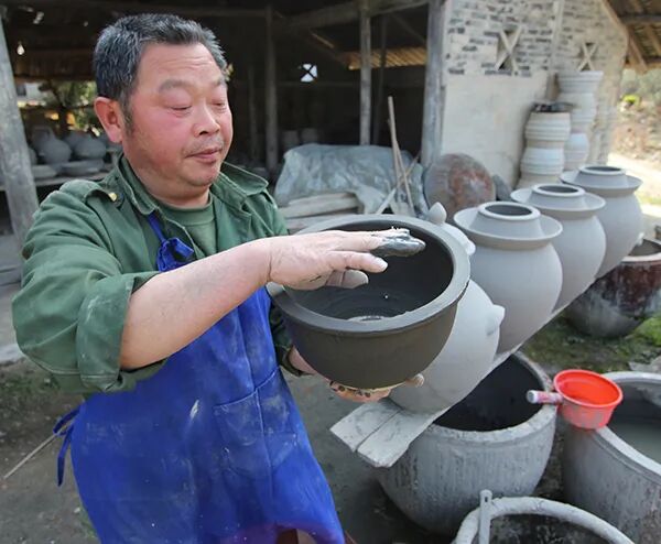 窑罐制作:窑罐制作是把白鳝泥、高岭粘土碾成细末,经沉淀、跺泥、捏坯,再置于转轮上拉坯成型,又经蔫水、施釉、晒干、入窑煅烧、出窑等,泥巴便成了窑罐。窑器分祭祀、赏玩、生活三大类。祭祀类有方鼎、香炉、化纸钱炉等;建筑装饰类有五脊六兽、琉璃瓦等;赏玩摆设类有狮子、猪、牛、鸡、兔、鱼等;生活类有水缸、酒坛、腌菜罐、扑水罐、盐罐、油罐、茶罐等60余种。