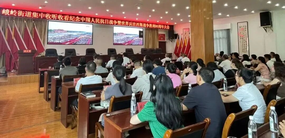 峨岭街道干部职工集中收看大会盛况