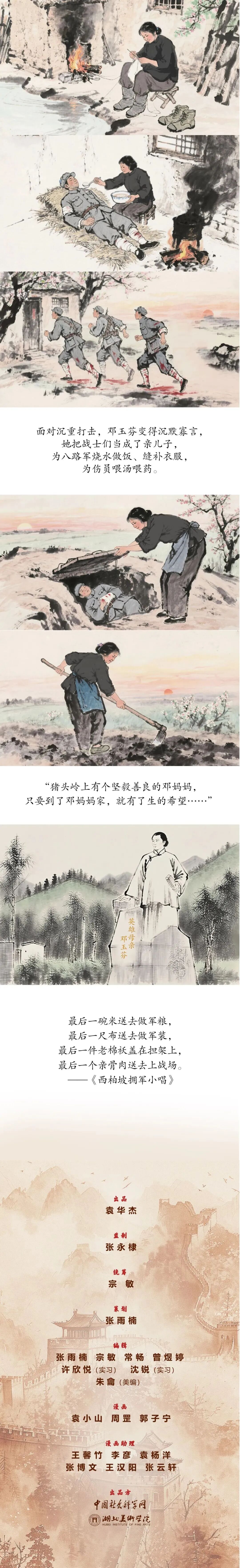 今年是中国人民抗日战争暨世界反法西斯战争胜利80周年,为了弘扬伟大抗战精神,传承好红色基因,讲好红色故事,中国社会科学网与湖北美术学院共同推出《习近平总书记深情讲述的抗战英雄故事》抗战主题系列漫画创作。一起来看第五篇《不屈的脊梁——英雄母亲邓玉芬》。