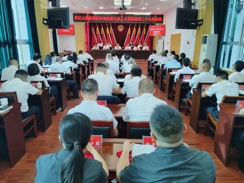 9月29日,自治县第九届人大常委会召开第二十九次会议,县人大常委会主任张翊斌,副主任田仁森、任翔、程红、蒋兴武刘刚出席会议。县委常委、县纪委书记、监委主任邹贵生,县人民政府副县长李天禄、田姣,县人民法院院长曾建敏列席会议。