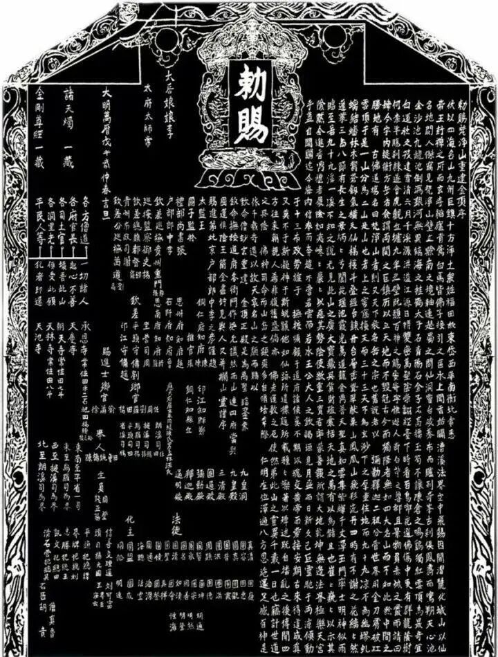 当代人的目光聚焦在发黄的典籍上,文字无声无息地述说着保护梵净山:万历四十六年(1618年),万历皇帝册封建立《敕赐碑》,是全国现存唯一以皇帝名义颁布的山岳保护敕令碑,并将生态保护纳入国家法典《大明律·户律》。碑文《敕赐梵净山重建金顶序》中记载:“敕谕官员军民诸色人等:梵净山乃天下名岳,四至分明。诸色人等,毋得侵扰劫掠,伐木掘矿,秽渎灵区。敢有不遵者,治以重罪。”“赐妙玄为钦命僧,统辖四十八座脚庵,凡山场草木,皆归僧众护持。”道光三年(1823年),铜仁知府敬文立《梵净山禁树碑记》称:“草木者,山川之精华;山川者,一郡之气脉……勒诸石,永以为禁。”严禁砍伐树木。