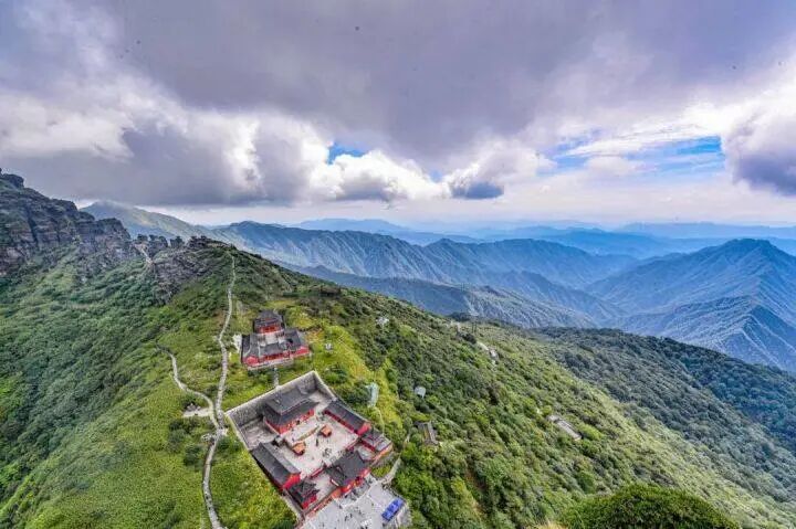 葳蕤梵净山横跨贵州铜仁市江口县、印江土家族苗族自治县和松桃苗族自治县交界处,东西宽21千米、南北长27千米,其保护核心面积775.14平方千米,森林覆盖率达97%。这座矗立于武陵之巅的“诺亚方舟”,完好保存着第三纪、第四纪气候剧变中形成的极其丰富的生物多样性,为人类认知自然演替规律提供了不可替代的科研样本。