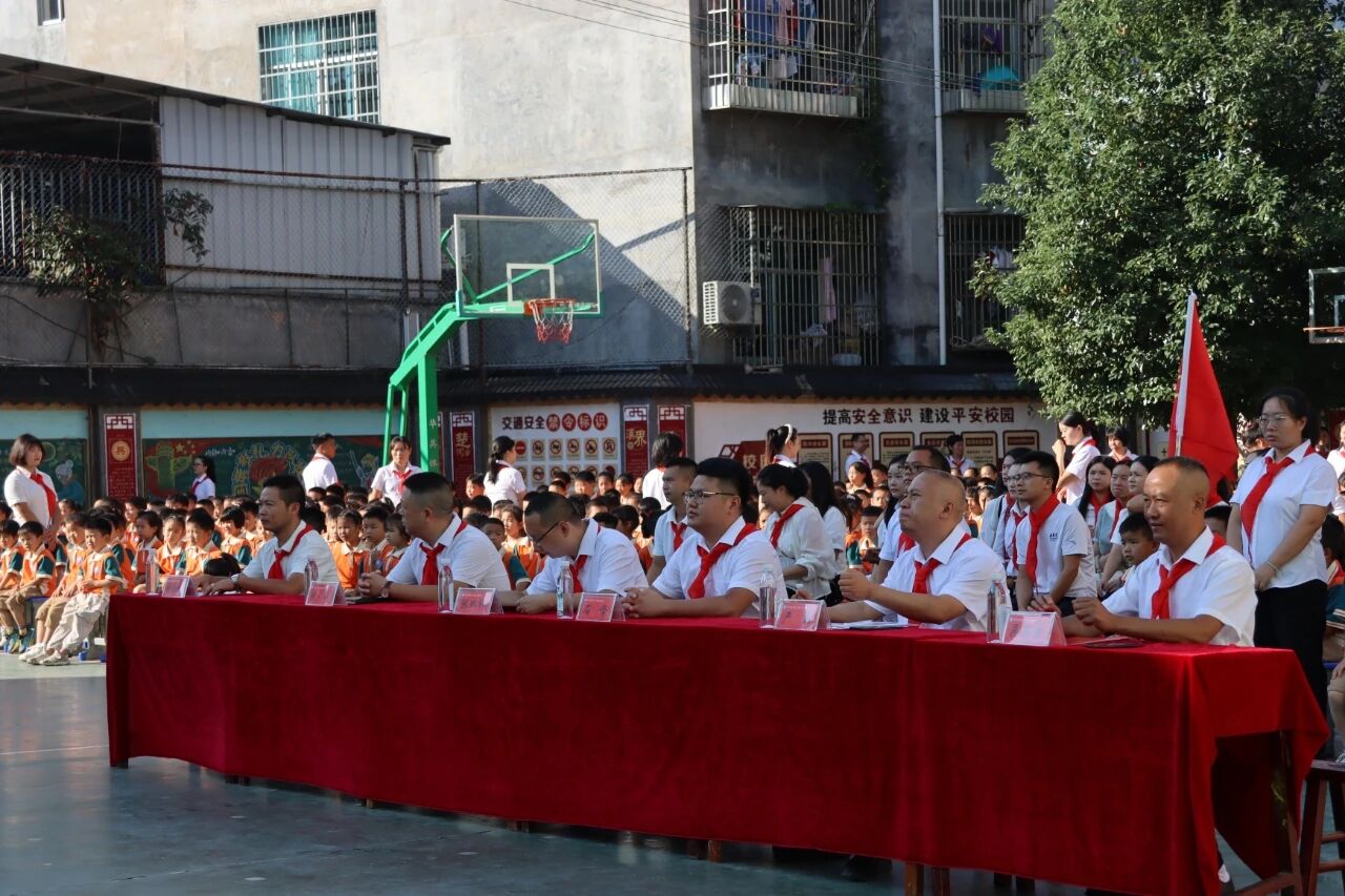 仪式在庄严的升旗仪式中拉开序幕,党、团、队旗依次出场,全体人员齐唱《中国少年先锋队队歌》,嘹亮歌声彰显着新时代少年的蓬勃朝气。