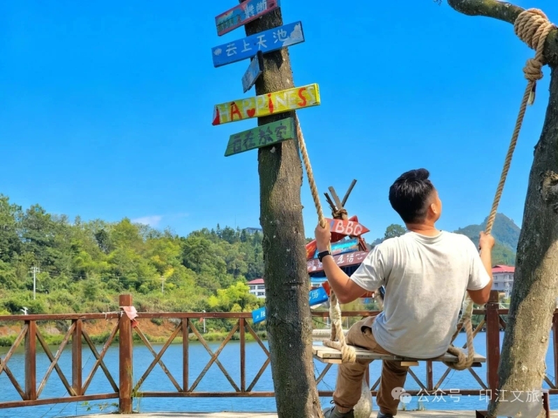 亭旁两树之间,悬一秋千。轻轻摇晃,身子随湖山一同起伏。那一刻,“面朝大海”的诗意,不再是书上的比喻,而成了一种真切的、身体的记忆。