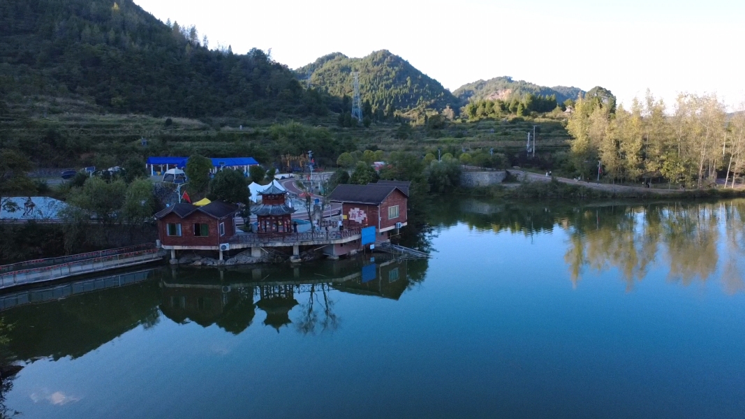 前行见一广场,水边悬着三座小木屋,俏皮的尖顶倒映水中,虚实相生,成一个纤尘不染的梦。旁边的凉亭里,最宜围炉煮茶。看热气袅袅,遥对平旷的湖面,那颗纷扰的心,也便渐渐沉静如这止水。