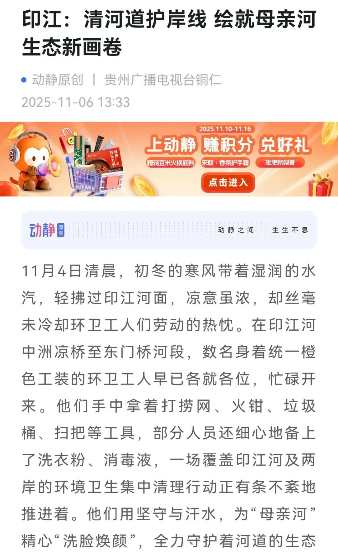 ▲11月6日,动静贵州报道:印江:清河道护岸线 绘就母亲河生态新画卷