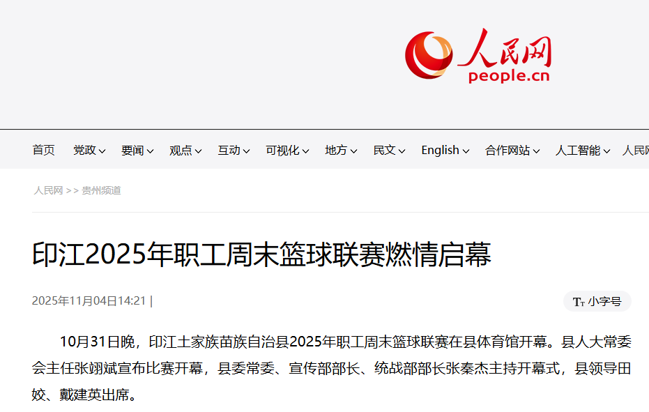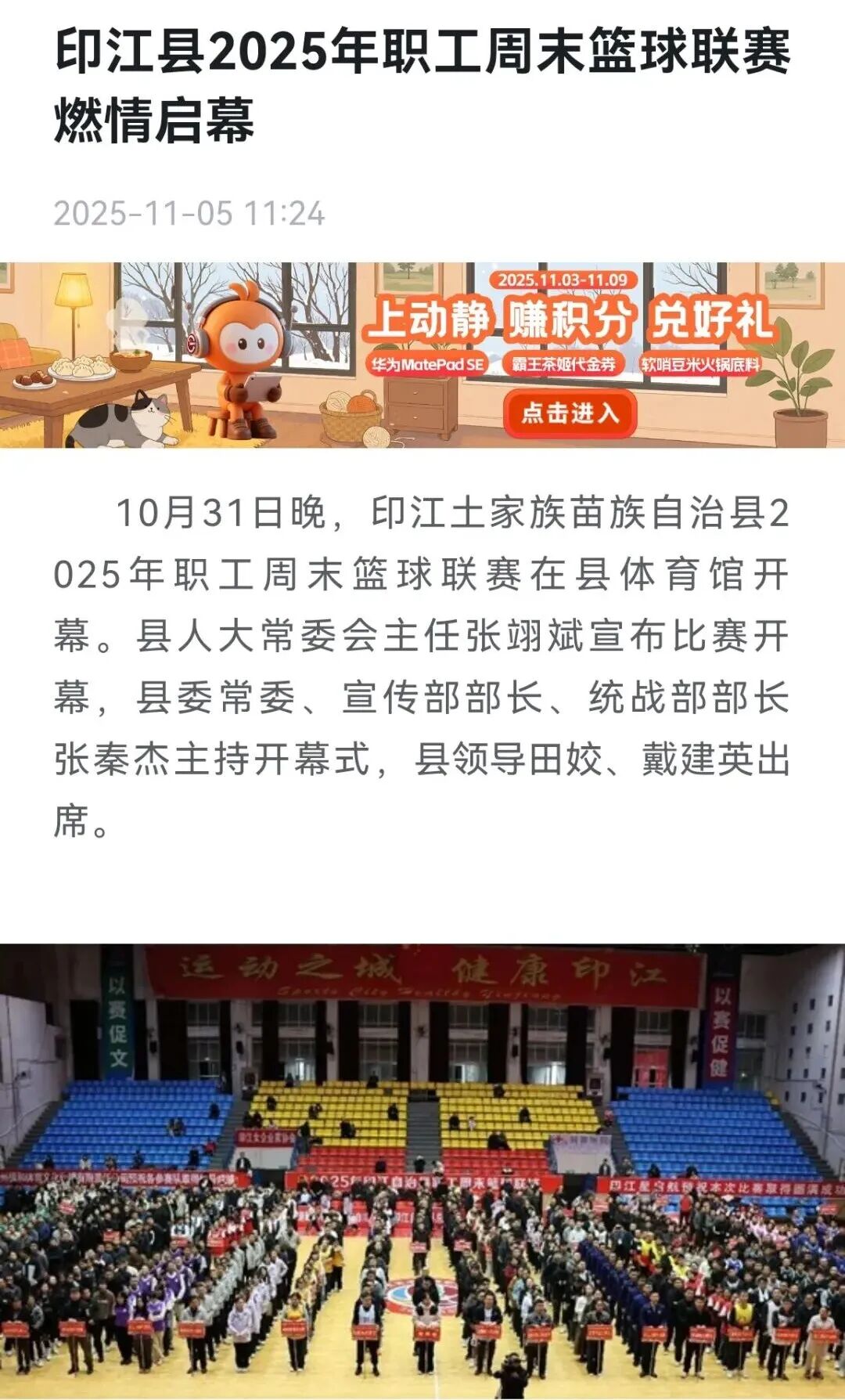 ▲11月5日,动静贵州报道:印江县2025年职工周末篮球联赛燃情启幕