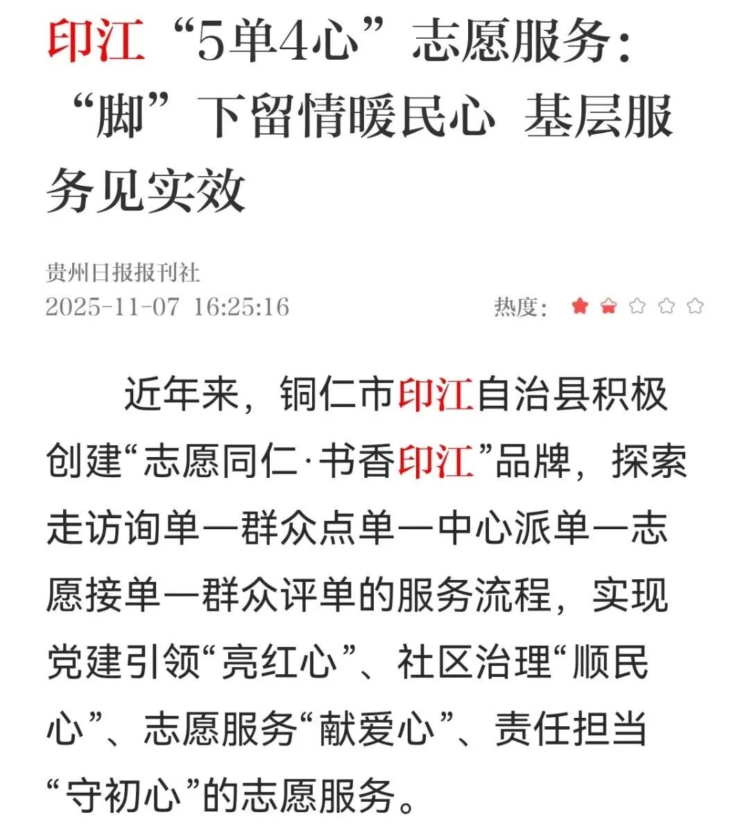 ▲11月7日,天眼新闻报道 印江“5单4心”志愿服务:“脚”下留情暖民心 基层服务见实效