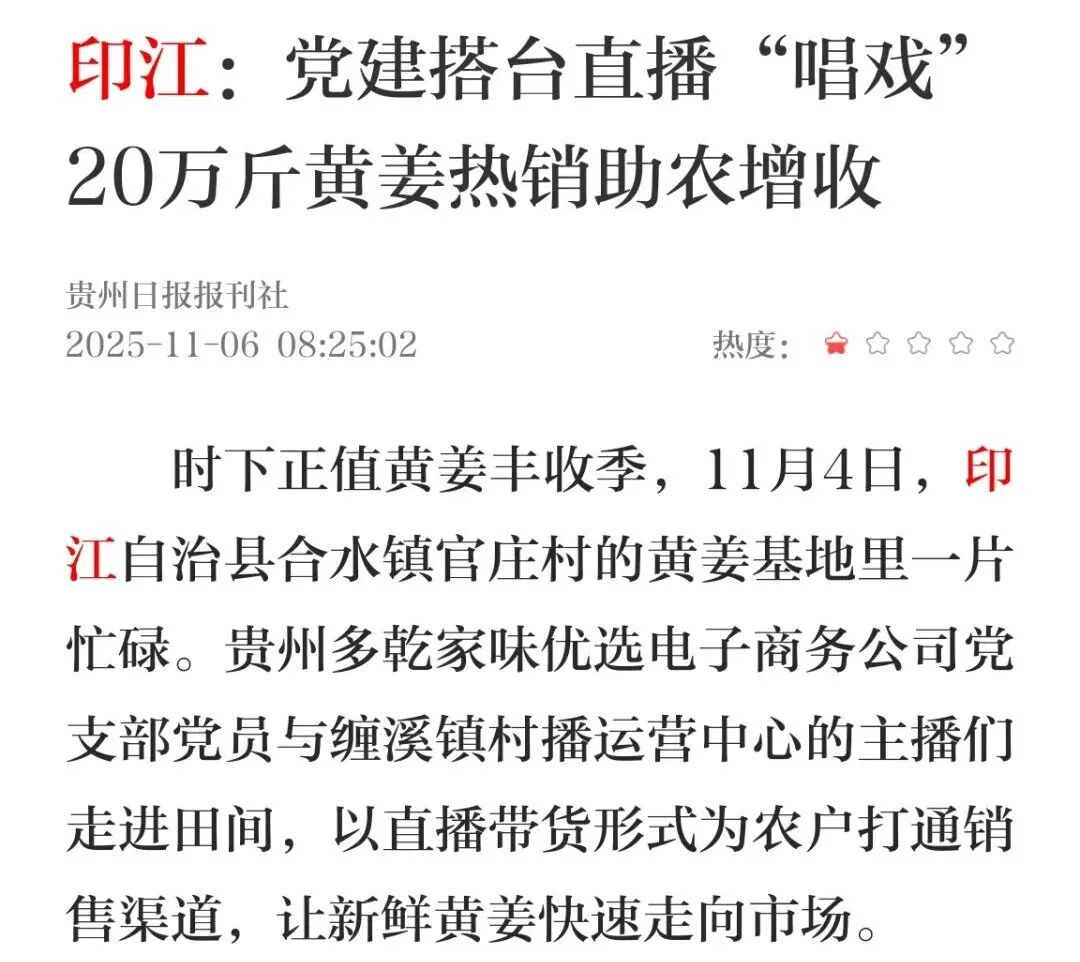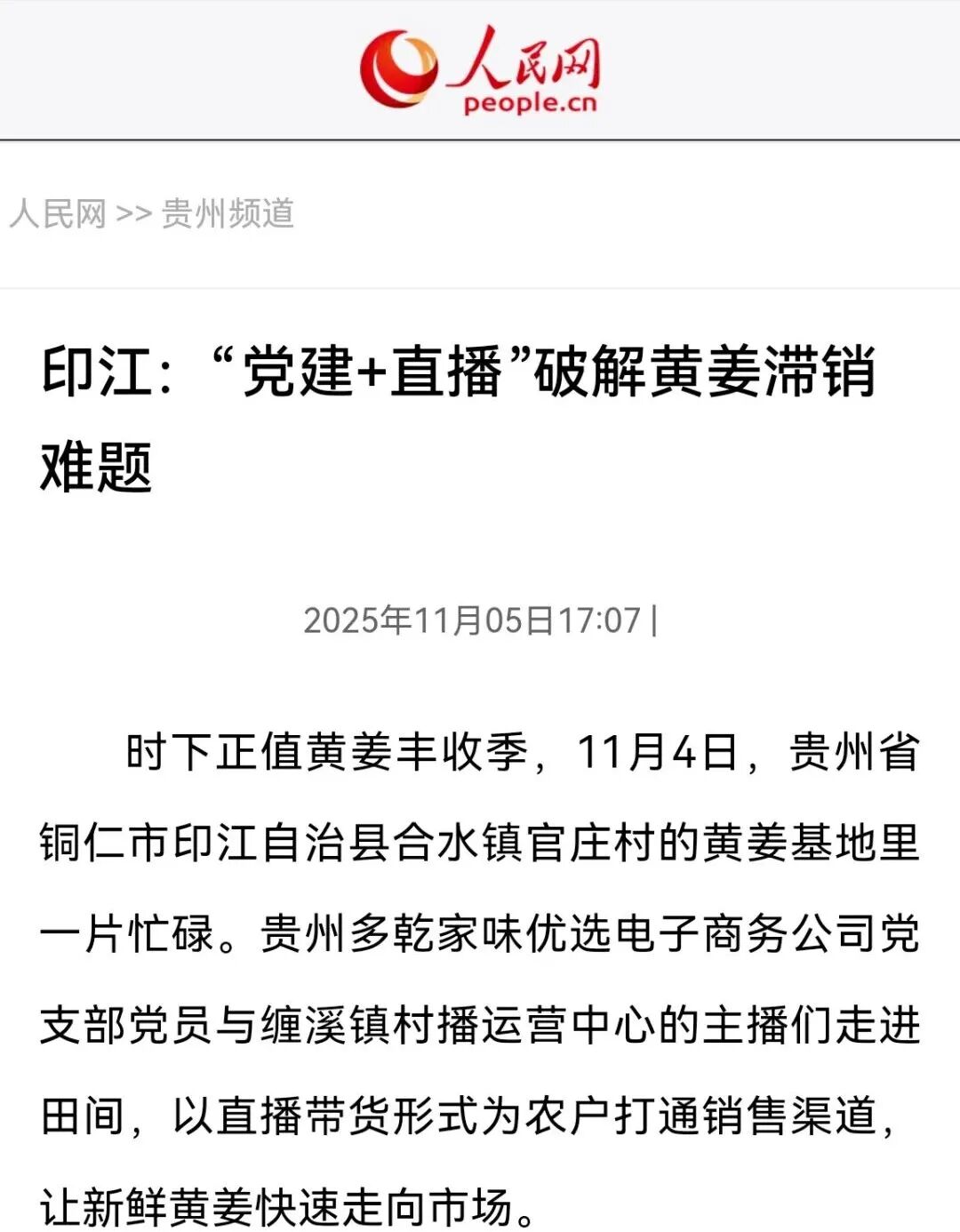 ▲11月5日, 印江:党建+直播”破解黄姜滞销难题