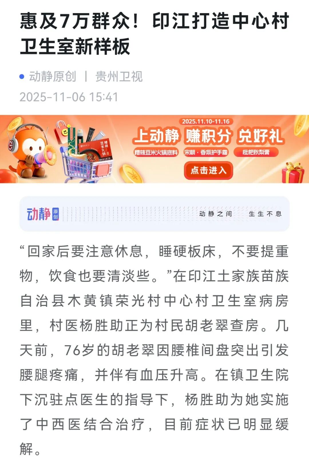 ▲11月6日,动静贵州报道:惠及7万群众!印江打造中心村卫生室新样板