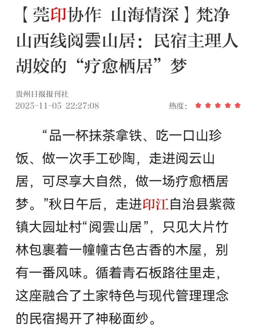 ▲11月4日,贵州日报报道 印江“村戏”:山地文化吸引八方游客 、印江自治县银龄健步活动便民暖心