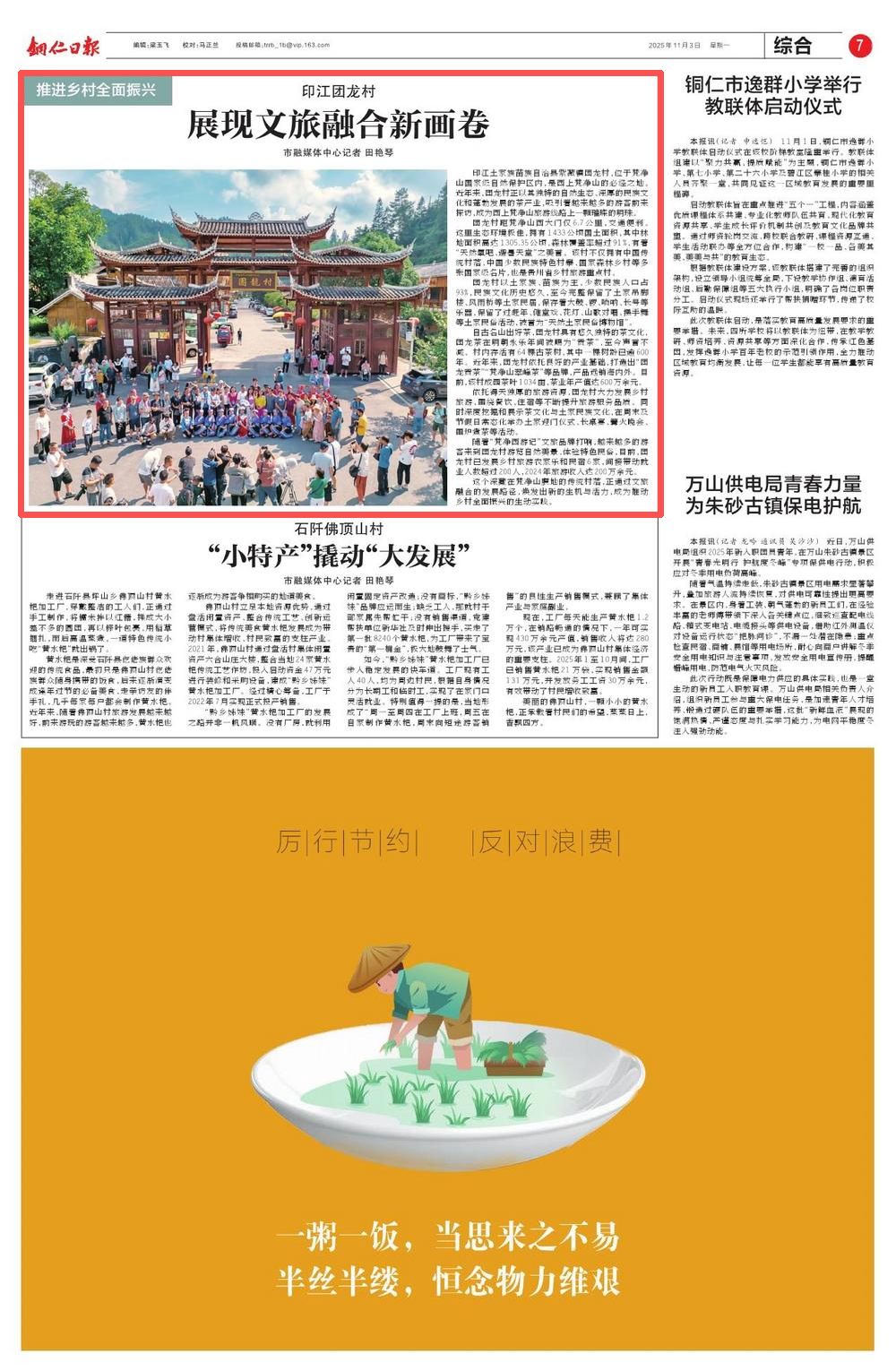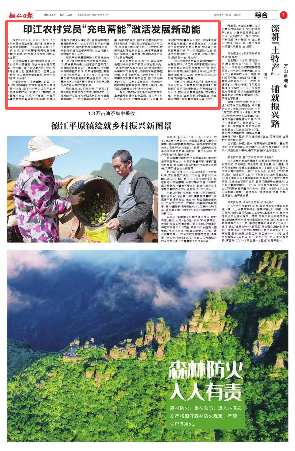 ▲11月7日,《铜仁日报》报道 印江江家坡村 路通业兴绘新景 水润心田话幸福