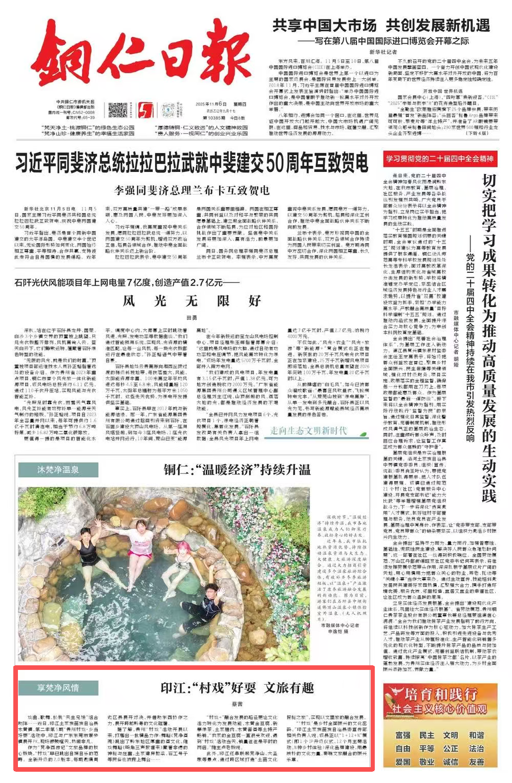 ▲11月6日,《铜仁日报》报道 印江:“村戏”好要文旅有趣