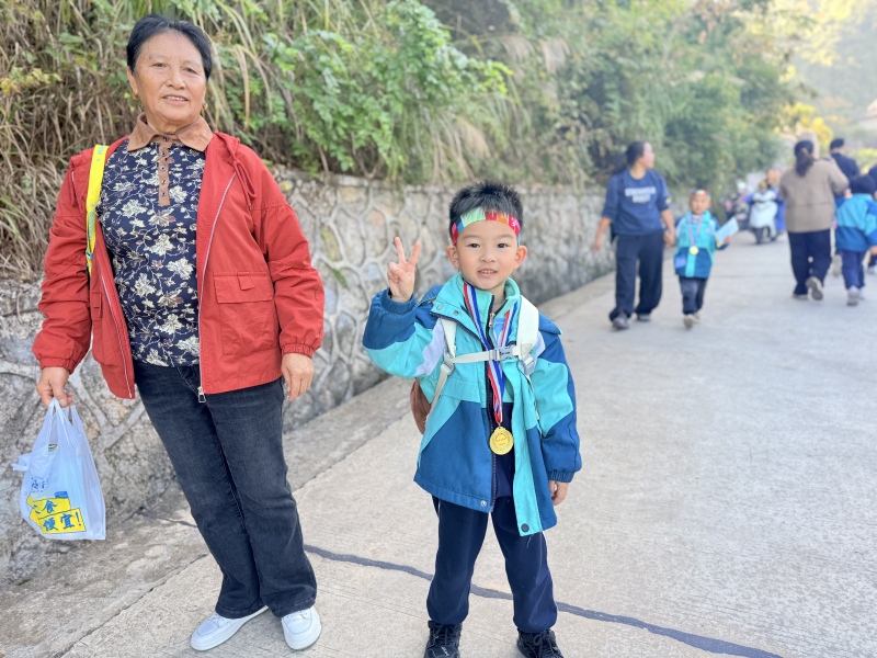 经过近两小时的坚持,所有家庭顺利抵达终点,孩子们凭借完整印章领取“徒步小勇士”纪念奖牌,脸上满是自豪。随后大家参与放松运动,集体合影定格美好瞬间。