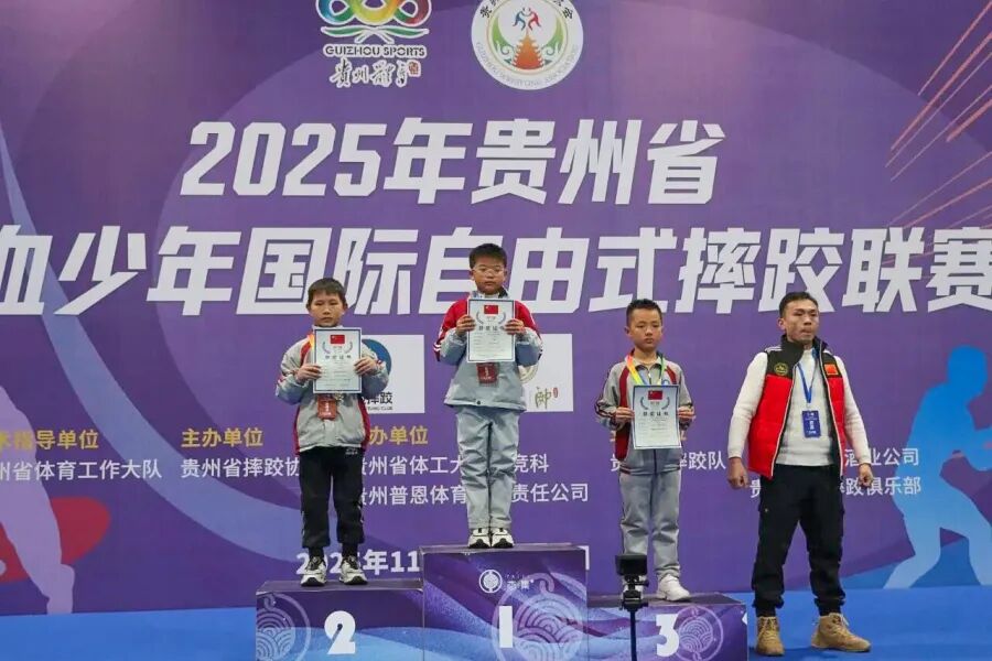 冠军的诞生从不是偶然,而是一座城市体育基因的厚积薄发在印江,体育精神早已融入城市血脉,渗透到每个角落。就在不久前的2025年贵州省热血少年自由式摔跤联赛中,印江自治县缠溪镇中心完全小学的小将们奋勇争先,凭借扎实的功底、顽强的意志在赛场上披荆斩棘,最终斩获5枚金牌、7枚银牌、8枚铜牌的骄人战绩,更以雄厚的整体实力拿下团体总分第三名的优异成绩!稚气未脱的脸庞上,写满了不服输的韧劲,他们用汗水证明,印江的体育力量正在代代相传,少年强则家乡强的信念,在这些孩子身上得到了最生动地诠释。