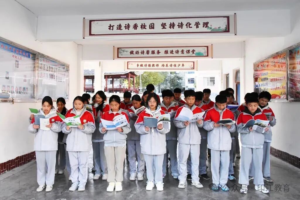漫步板溪中学校园,处处浸润着书香墨韵的浓厚氛围。走廊间,师生诗词佳作相映成趣;图书角旁,学子围坐共读经典;课堂之上,师生共品名家篇章;文学社内,学员畅聊创作感悟、即兴挥毫成文。
