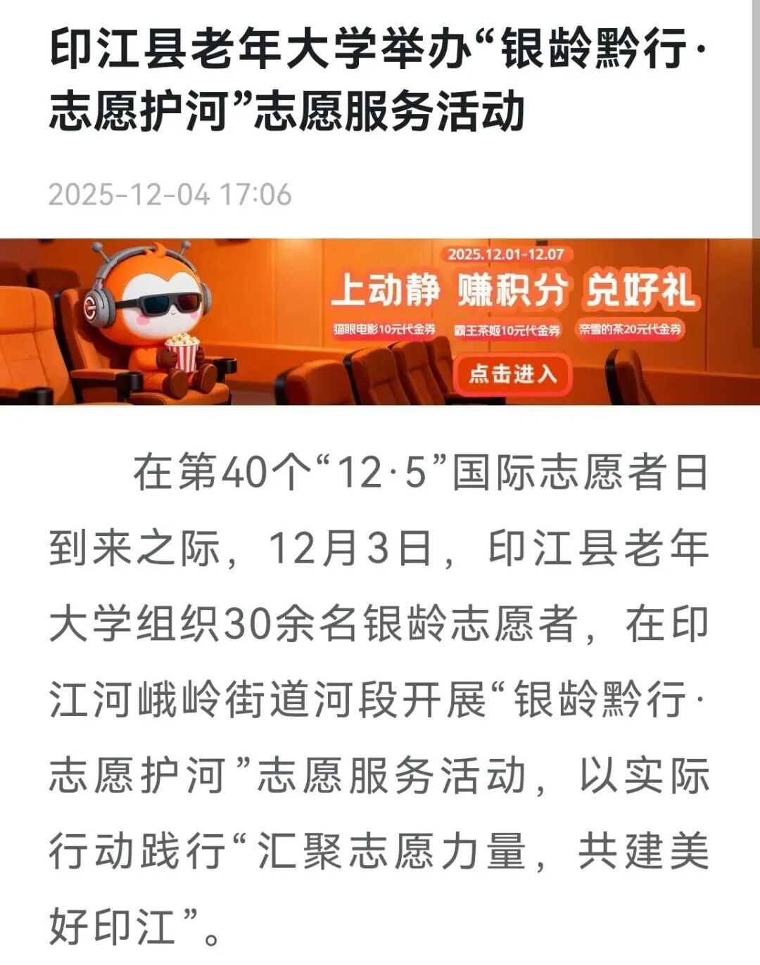 ▲12月4日,动静贵州报道:印江县老年大学举办“银龄黔行志愿护河”志愿服务活动