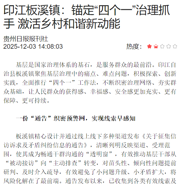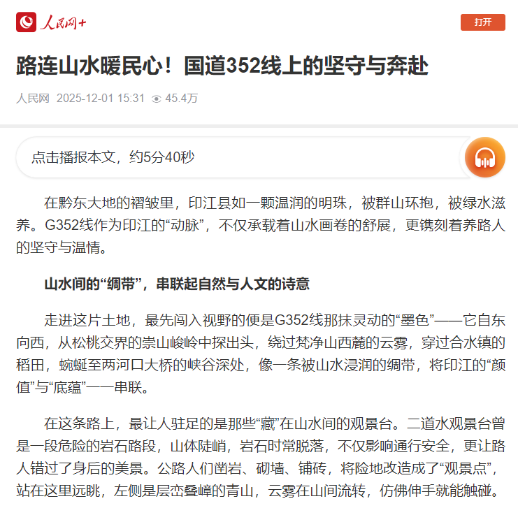 ▲12月1日,人民网报道贵州印江:路连山水暖民心!国道352线上的坚守与奔赴