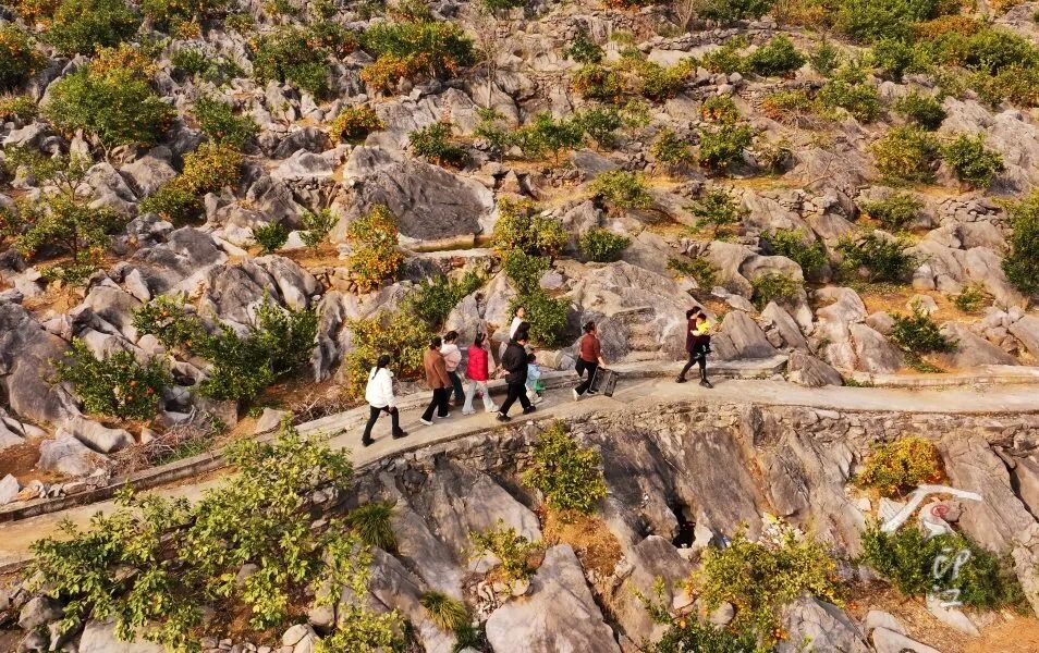 在印江自治县朗溪镇河西村石漠化治理区,延绵数公里的石山上橘香四溢,黄灿灿的柑橘挂满枝头、红满山坡,在阳光的照射下把石山点缀得分外美丽,游客或结伴穿行于观光道上,或走进果园中体验采摘的乐趣,成为当地冬季乡村游一道靓丽的风景线。