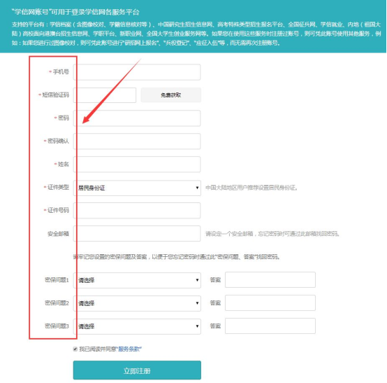 第四步②:填写框内带*的全部内容,点击“立即注册”: