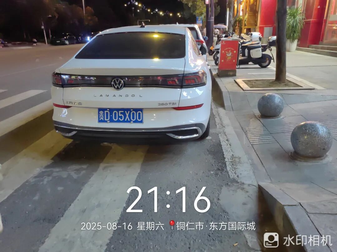 此车在印江虹湾宾馆北(建设路)未停放在车位里。