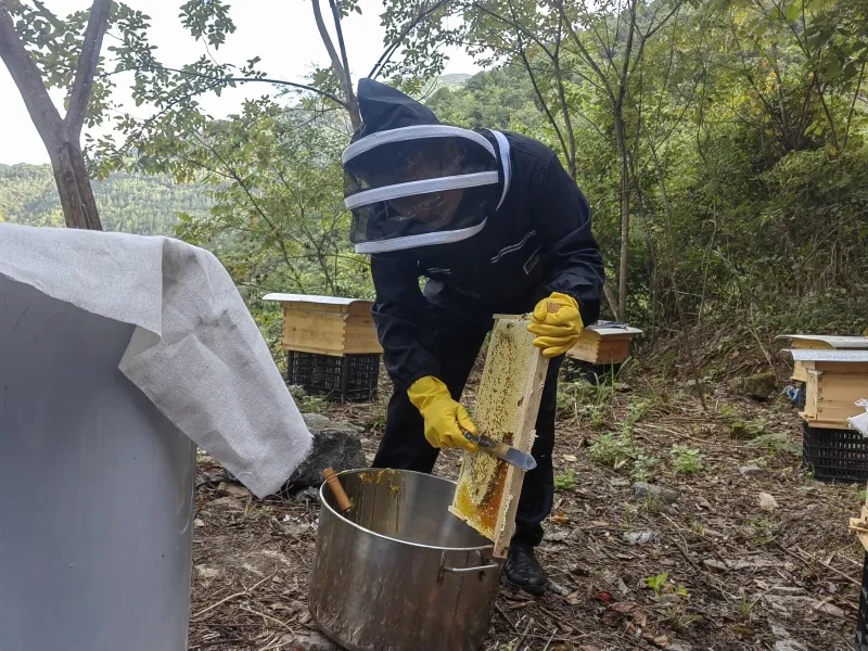 9月17日,缠溪镇客店沟村村民代传政家迎来了梨坪中蜂合作社的工作人员,“老代,入秋后马蜂活跃,可得做好防护!”这样的上门提醒,每月都会走进合作社社员家。自2017年梨坪中蜂合作社成立以来,缠溪镇便在近20个村推行“党支部+合作社+基地+农户”模式,通过统一技术指导、生产加工、品牌包装和市场销售,把分散的养蜂户拧成了“一股绳”。