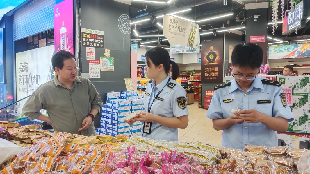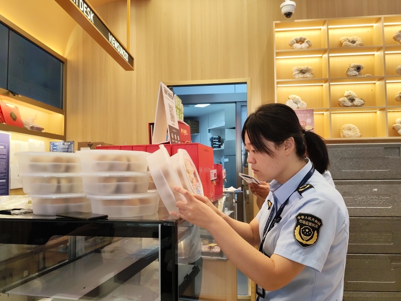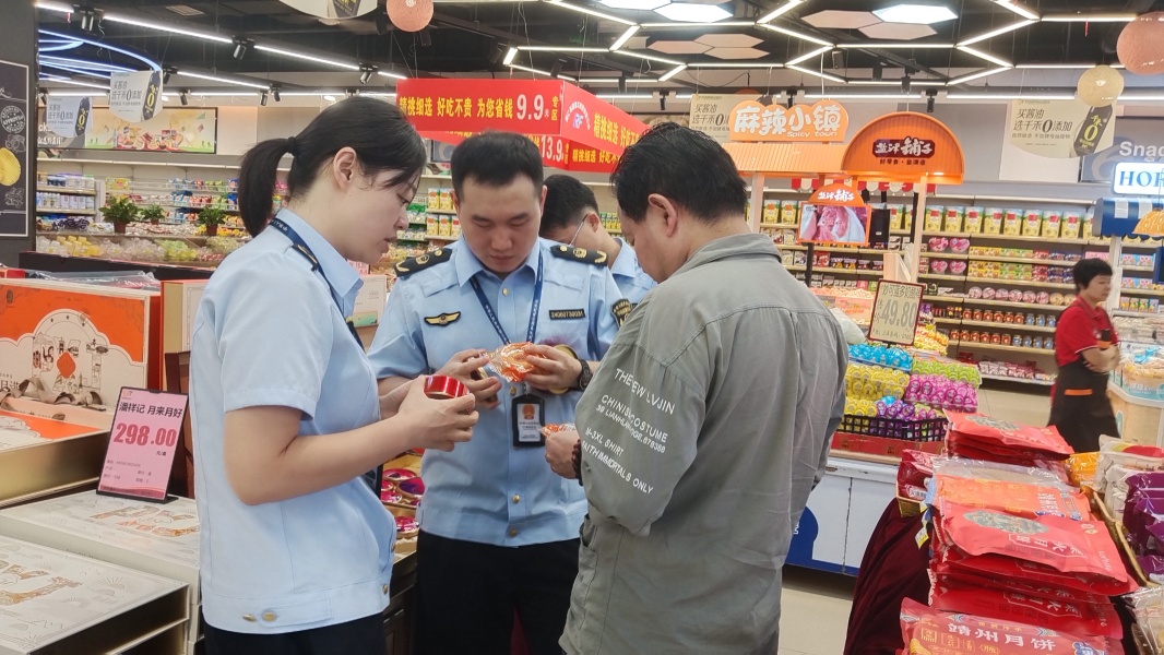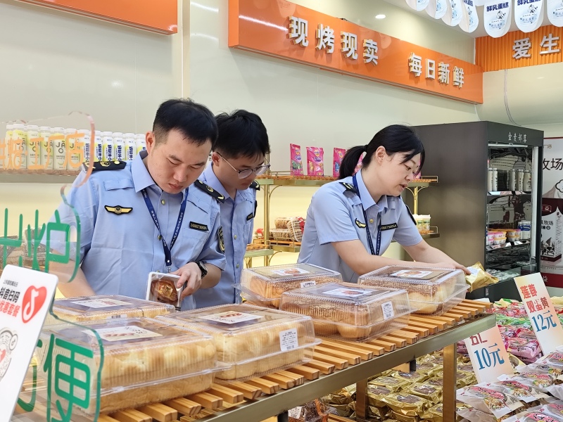 在流通领域,执法人员对辖区内各大商场、超市等重点场所进行了突击检查,聚焦月饼、米面粮油、酒类等节日热销商品。执法人员逐一细致查验商品的包装标识,确保产品名称、生产日期、保质期、厂名厂址等关键信息标注清晰、完整、准确,坚决杜绝“三无”产品、过期变质食品流入市场,切实维护节日市场秩序。