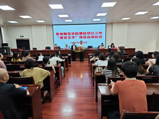 9月22日下午,贵州师范学院“国家语言文字推广基地印江工作站”挂牌仪式在印江三中举行,标志着该校正式成为“普通话推广示范基地”。贵州师范学院文学与传媒学院党委副书记高媛、副院长李明勇(兼任印江土家族苗族自治县峨岭关村驻村第一书记)以及相关专家出席活动。