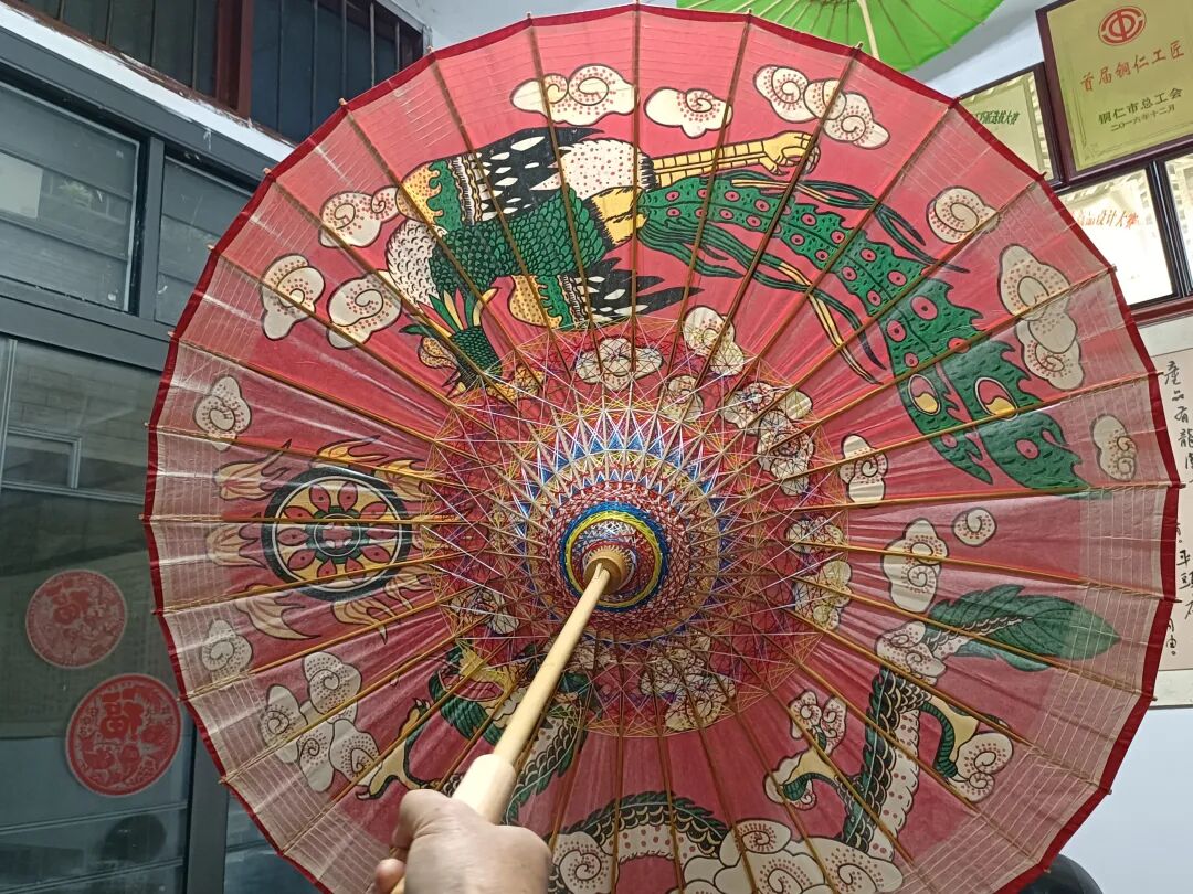 “现在年轻人结婚,既要西式婚纱,有的也要定制一把手绘油纸伞。”张朝全展示着最新设计的“龙凤呈祥”系列,伞面的龙凤图案栩栩如生,喜庆祥和。