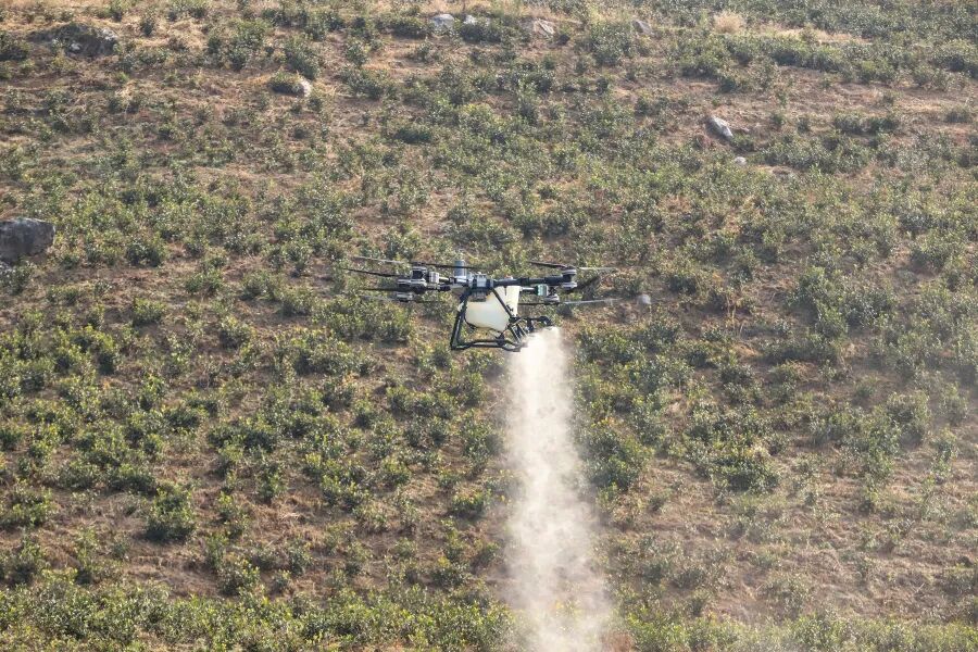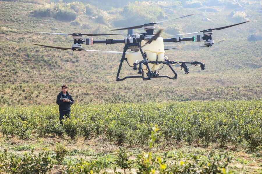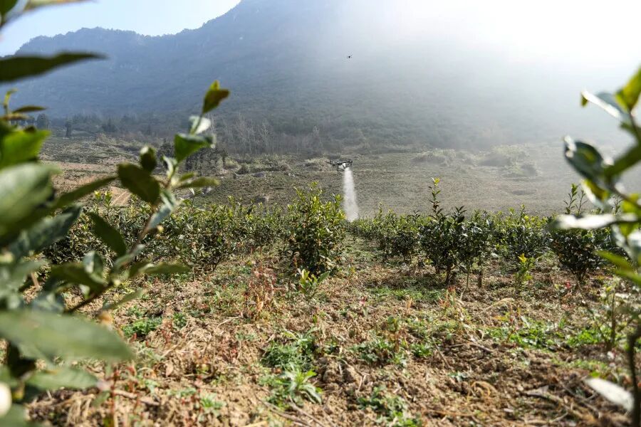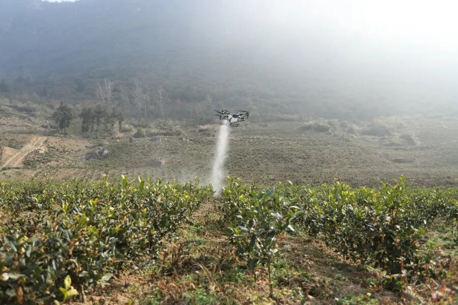 立冬过后,印江的茶园也迎来了一年一度的管护关键期。 在龙津街道长坡村,500余亩连片的黄金叶茶园里,阵阵轰鸣声打破了山间的宁静——植保无人机腾空而起,机翼下,混合着矿物油与联苯菊酯的生物药剂化作细密雾滴,均匀洒落在嫩绿的茶丛之上。 “今天我们打的是茶叶封园药,主打防虫、防冻、杀虫!”无人机飞防手张鹏熟练操控着大疆T100,语气里满是笃定,“这机子效率高,一天能作业一两百亩,我们必须保质保量完成管护,为茶树过冬筑牢防线!” 作为印江“2+N”主导产业的核心,全县26.5万亩茶园的越冬管护,直接关系到来年茶青的产量与品质。今年,印江创新依托21家农机专业合作社的社会化服务,无人机飞防替代传统人工喷施,效率提升上百倍,让茶园管护跑出“加速度”。 空中作业忙,地面管护也丝毫不松懈。田间地头,农技人员的身影随处可见,高级农艺师任晓莉正手把手指导工人松土施肥:“寒潮马上就要来,幼龄茶园开沟深度要达到十到十五公分,一亩地施400公斤有机肥加100斤复合肥,这样才能让茶树储存充足养分,促进根系生长,提高防寒能力!”工人们手握锄头,按照“深挖厚埋”的标准,一锄一锄把肥料埋进土里,为茶树积蓄越冬的能量。 从空中飞防到地面深耕,从药剂喷施到科学施肥,印江茶园越冬管护的每一个环节都透着专业与精细。如今,全县茶园封园管护已进入尾声,在无人机高效率作业与科学田间管理技术的双重加持下,完成管护的茶园,越冬芽抗寒抗病能力大幅提升。 “飞防和人工管护都结束啦,就算凝冻天气来,我们也完全放心!”龙津街道大坡村茶叶种植户吴大印望着漫山茶园,脸上洋溢着踏实的笑容。 冬管正当时,静待春来早。待明年万物复苏时,印江的茶园里必将茶香四溢,迎来又一个丰收年!(印江融媒体中心记者 王东 田林)