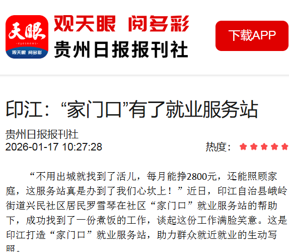 ▲1月17日,天眼新闻报道:印江:“家门口”有了就业服务站
