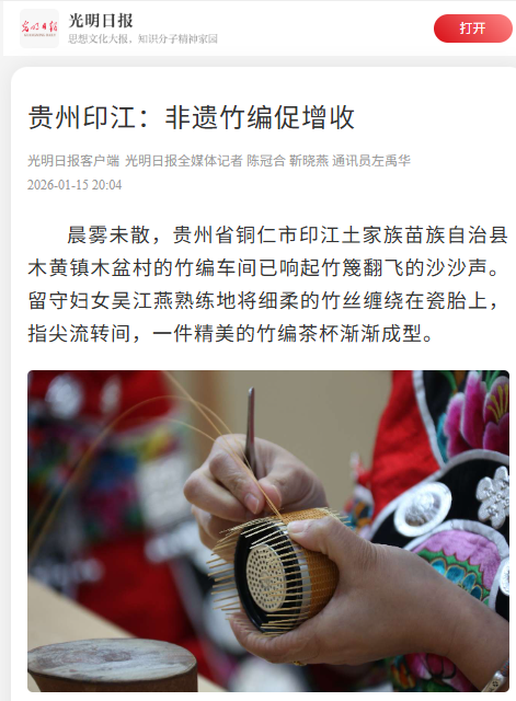 ▲1月15日,光明日报报道:贵州印江:非遗竹编促增收
