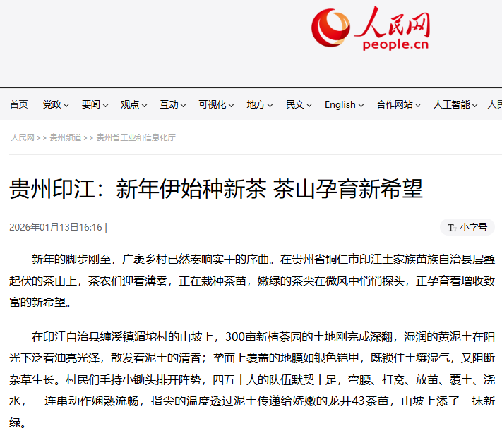 ▲1月13日,人民网报道贵州印江:新年伊始种新茶 茶山孕育新希望