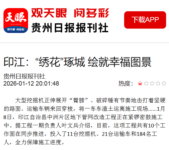 ▲1月12日,天眼新闻报道 印江:“绣花”琢城 绘就幸福图景