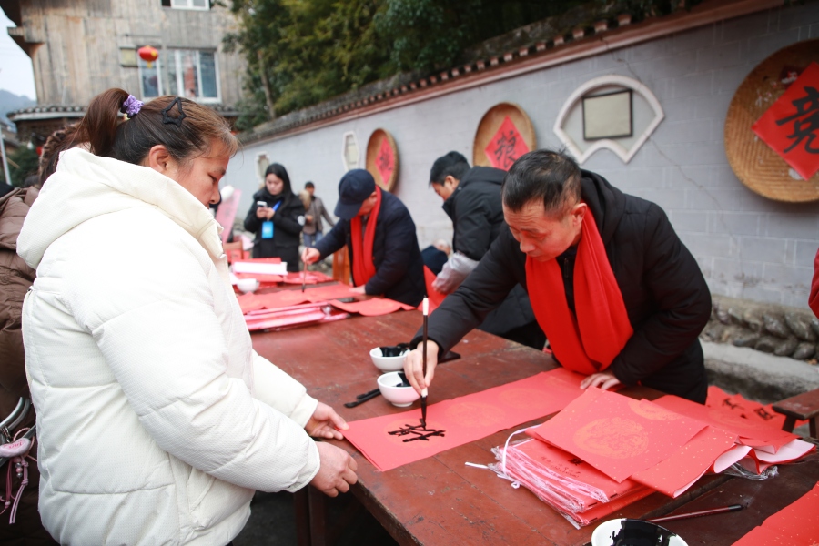 活动当天现场共书写春联600余副、福字200余张,全部免费赠送给村民。